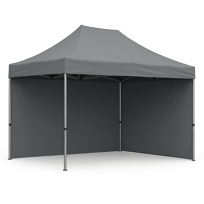 Alliez efficacité et visibilité avec notre stand pliable 6m² 2mx3m Gris avec parois latérale. Idéal pour vos événements en plein air, ce barnum avec structure en acier semi-pro vous protègera tout en valorisant votre présence. En prime, léger Il se monte en un clin d’œil, il vous offre une protection contre les intempéries est une belle visibilité.