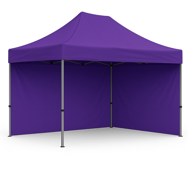 Alliez efficacité et visibilité avec notre stand pliable 2mx3m Violet avec parois latérale et porte. Idéal pour vos événements en plein air, ce barnum avec structure en acier semi-pro vous protègera tout en valorisant votre présence. En prime, léger Il se monte en un clin d’œil, il vous offre une protection contre les intempéries est une belle visibilité.
