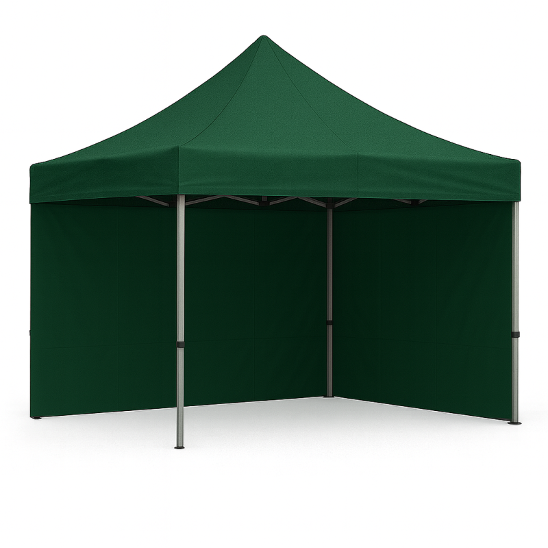 Tonnelle pliable 3x3m avec pack parois + porte couleur Vert forêt l’alliée idéale de vos événements professionnels ou privés. Facile à monter et à transporter, elle allie praticité, design moderne et solidité éprouvée. Sa structure robuste en acier et sa toile imperméable haute qualité assurent une protection optimale quelles que soient les conditions. Un espace abrité, élégant et résistant pour accueillir vos visiteurs en toute sérénité.