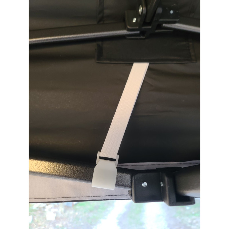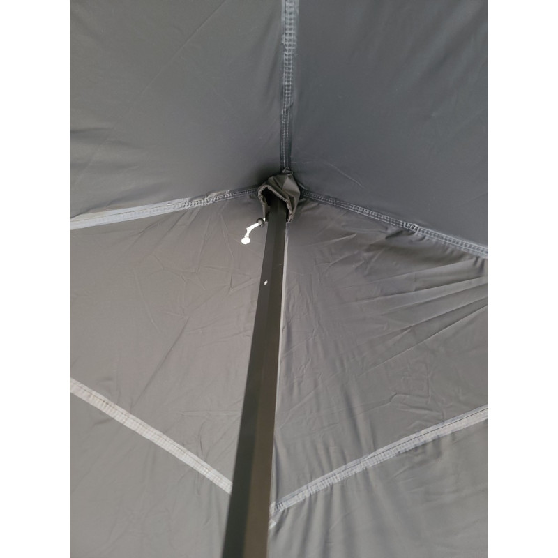 Le prix comprend : structure + toit + sac de transport à roulettes + cordes avec piquets.