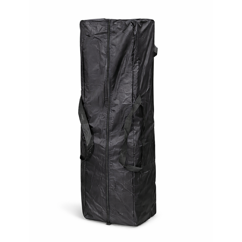 Kit tente pro : structure + toit + sac de transport à roulettes + sangles avec piquets.