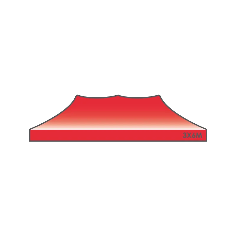 Toit Rouge bâche de remplacement 3 m x 6 m, toile complète en polyester PVC 320 g/m², étanche, avec renforts de protection aux angles et mâts. Fixation par Velcro pour les parois. Montage simple et rapide grâce aux Velcros aux angles et aux tendeurs de maintien avec crochets sur la structure. Compatible avec une armature de tente pliante en acier ou stand aluminium de 18 m².